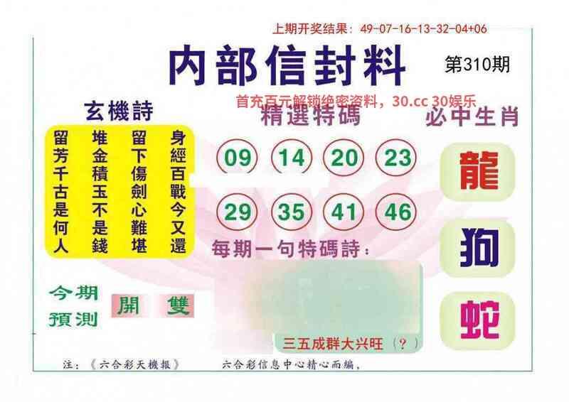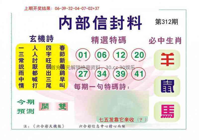 309期:绝杀三肖【羊虎狗】开:鼠06准